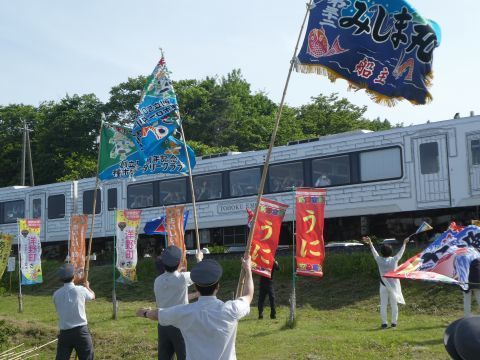 先日の、6月8日〜9日にかけて、八戸〜久慈までの往復で運航されている東北エモーションが特別企画として、八戸〜釜石まで運行されることになり、復路の6月9日にいつもの大浜海岸に行き、旗振りに参加してきましたーー!